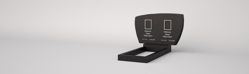 Горизонтальный двойной памятник из черного гранита. При своей простой форме мемориал отлично смотрится за счёт широких фасок и большой площади стелы, благодаря чему хорошо раскрывается природный узор натурального камня.