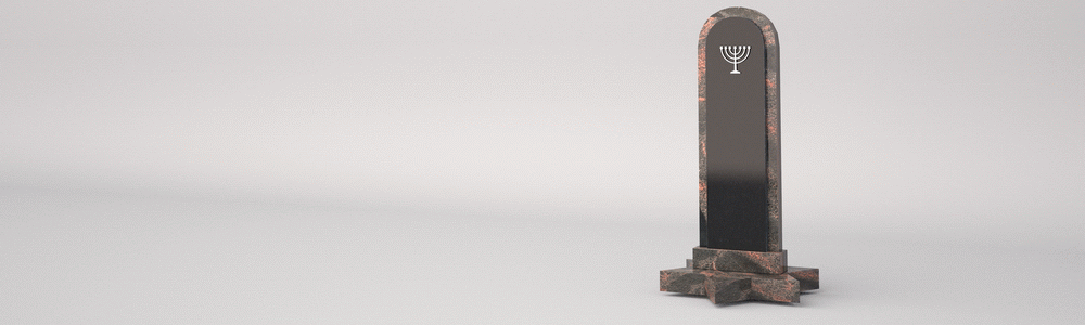 Иудейский памятник из гранита, который имеет неповторимую форму и великолепный внешний вид. Высокая вертикальная стела памятника стоит на основании, которое представляет собой шестиконечную звезду.